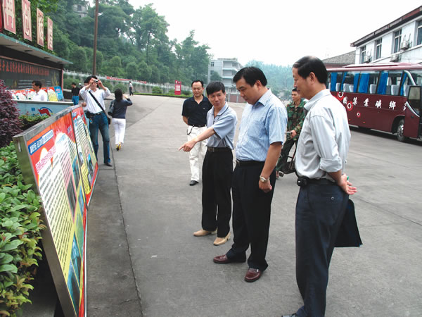 集团乐鱼页面在线登录副总经理林绍华等在安源矿观看安全科技成果展览 (袁鹏 摄)