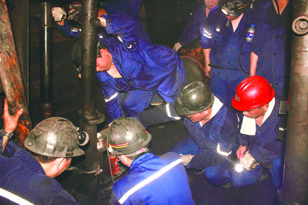 这个方法不错,这是谁发明的?这时,彭群伦兴奋地问。原来在溜子头下面安装一个铁斗,余煤落下后,只要在铁斗里铲,省了很多力气。他说,这方法值得推广。