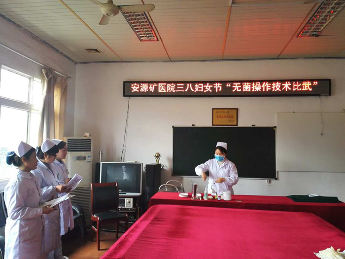 图为安源煤矿职工医院正在举行护士岗位练兵赛。(吴献忠 摄)