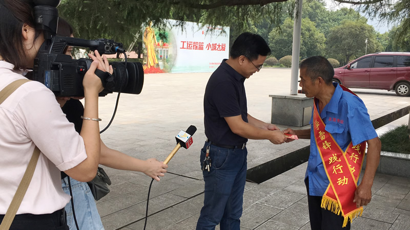 图为萍矿城市综合服务乐鱼页面在线登录领导为黄余敏送上拾金不昧奖金。
