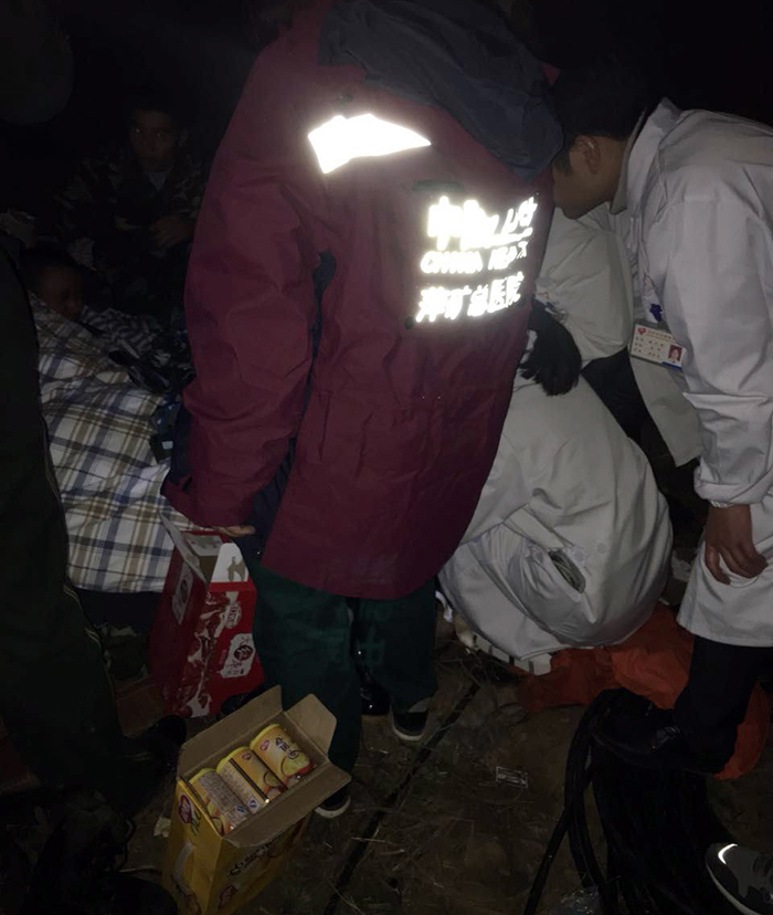 天然溶洞洞口狭小,仅一人高、两人并排宽,里面积水深。两名消防救援人员由于连续在湿冷的环境中工作,出现了虚脱现象。医疗救援队马上对他们进行医疗救援,为他们换上干衣服,测血压,喝温水,其中一名在现场就情况好转无恙,另一名好转后至附近医院继续治疗。救治过程中,肖饶军和江丽迅速准确的急救技术、和蔼可亲的沟通能力,赢得在场官兵和指挥中心的认可。 救援期间,消防救援人员轮换进入溶洞,溶洞里黑暗,洞壁、水里的石头容易擦伤皮肤。医务人员细致地为他们处理小伤口。下午三点多,一批救援人员被轮换出来,饥肠辘辘,此时饭点已过,体力也不支了,医疗救援人员赶紧拿出输液用糖水分发给消防人员喝,避免低血糖情况,增加热量,保障救援人员的体力。 时间一点一滴过去,天色渐渐暗下来,救援还在持续。救援队倪坚积极帮助现场应急组搭建帐篷,运送急救所需物资。晚上临近十一点,萍乡市人民医院和二医院的医疗救援队也来到了现场。医务人员时刻待命,轮流着就地休息,小眯一会。 一直到今日凌晨3点多,从指挥部得知已联系上被困人员,医疗救援队人员精神一振。不久,最后五名被困人员被陆续救出。经医生检查,三名专业岩洞工作人员身体状况还好,两名摄影师有些虚弱,给予专业医疗救助后也无大碍。 凌晨五点多,救援任务圆满完成。“最辛苦的还是进洞里救援的消防队员,相比而言,我们做得比较少。”参与此次救援的肖饶军说。