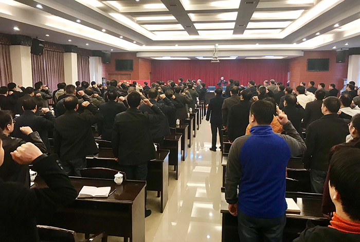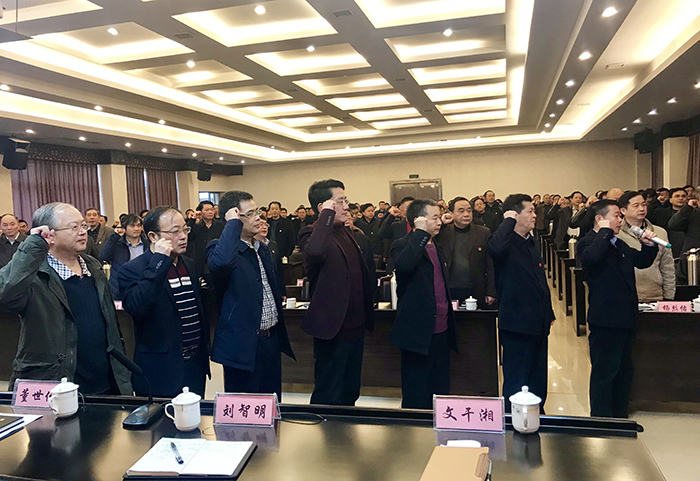 图为全乐鱼页面在线登录中层副职以上党员领导干部正在集体重温入党誓词。谢红英 摄