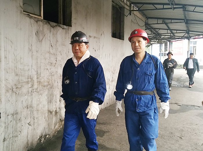 图为林绍华(左)在白源煤矿督导。罗献萍 摄