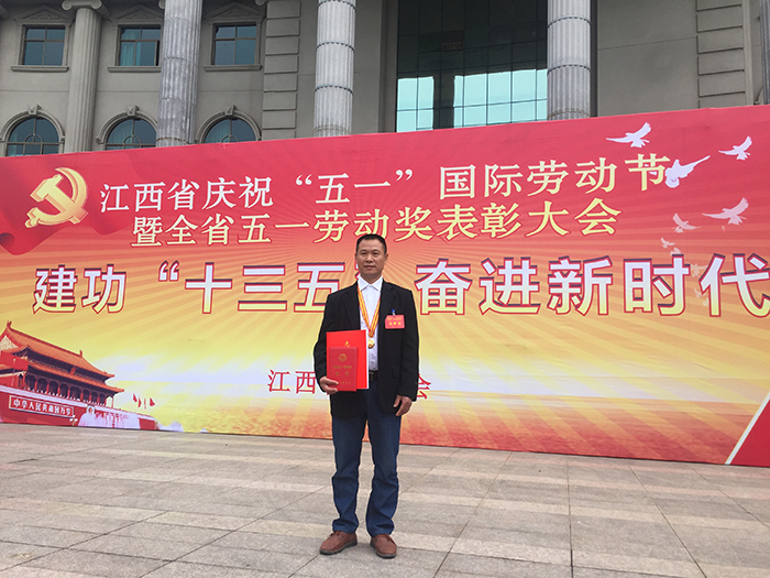 4月26日上午,江西省庆祝“五一”国际劳动节暨全省五一劳动奖表彰大会在南昌举行,白源煤矿采一区放顶大工欧阳国祥被授予“江西省五一劳动奖章”! 从1994年进矿以来,欧阳国祥一直与岩尖、风镐为伴,在采煤一线一干就是24个春秋。多年来的摸爬滚打,让他练就了吃苦耐劳、敢打硬仗的工作作风。在井下艰苦的环境中,他坚持出满勤,干满点。面对急难重的工作任务,他从不退缩,总是主动请缨作战。并始终将安全放在第一位,对工程质量严格要求,他经手的工程质量均达优良。他本人也多次被评为萍矿集团和白源煤矿劳动模范,还曾获评江能集团和萍乡市劳动模范。 再获殊荣的欧阳国祥激动地表示,今后他将一如既往以饱满的热情投入到矿井安全生产工作中,为企业脱困发展贡献自己的力量!