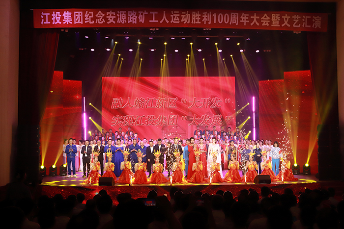 金秋时节的安源煤矿工人俱乐部,装扮一新,鲜艳的红旗高高飘扬。9月8日,江投集团纪念安源路矿工人运动胜利100 周年大会暨文艺汇演在此举行。赣江新区党工委副书记,江投集团党委书记、董事长揭小健,江投集团党委副书记、副董事长、总经理曾昭和;萍乡市人大常委会副主任,市总工会党组书记、主席刘占纯出席活动并颁奖。