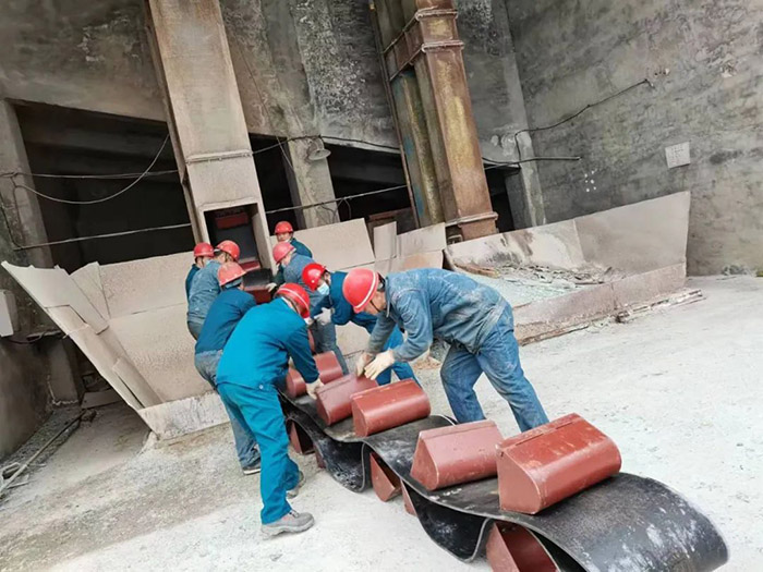 浮法玻璃厂原料车间提斗皮带因连续数年运行,设备磨损严重,多处出现胶层起皮。该厂于是决定对提斗皮带进行更换,确保皮带输送安全。