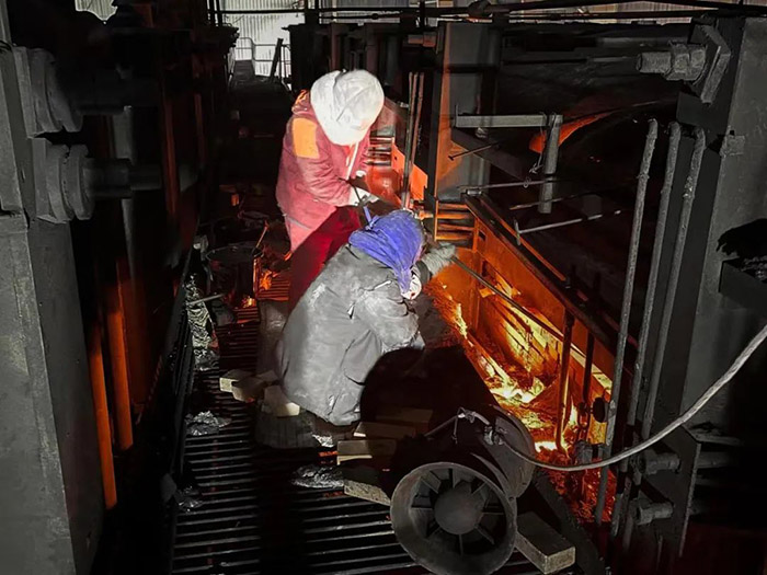 一轮又一轮的“接力赛”,就这样有条不紊地进行。为在最短时间内完成抢修,他们在抢修现场囫囵吞枣般吃了午饭后,又迅速投入战斗。历时7个小时,大家齐心协力,终于将120多块新耐火砖砌筑完成,圆满完成了抢修任务。