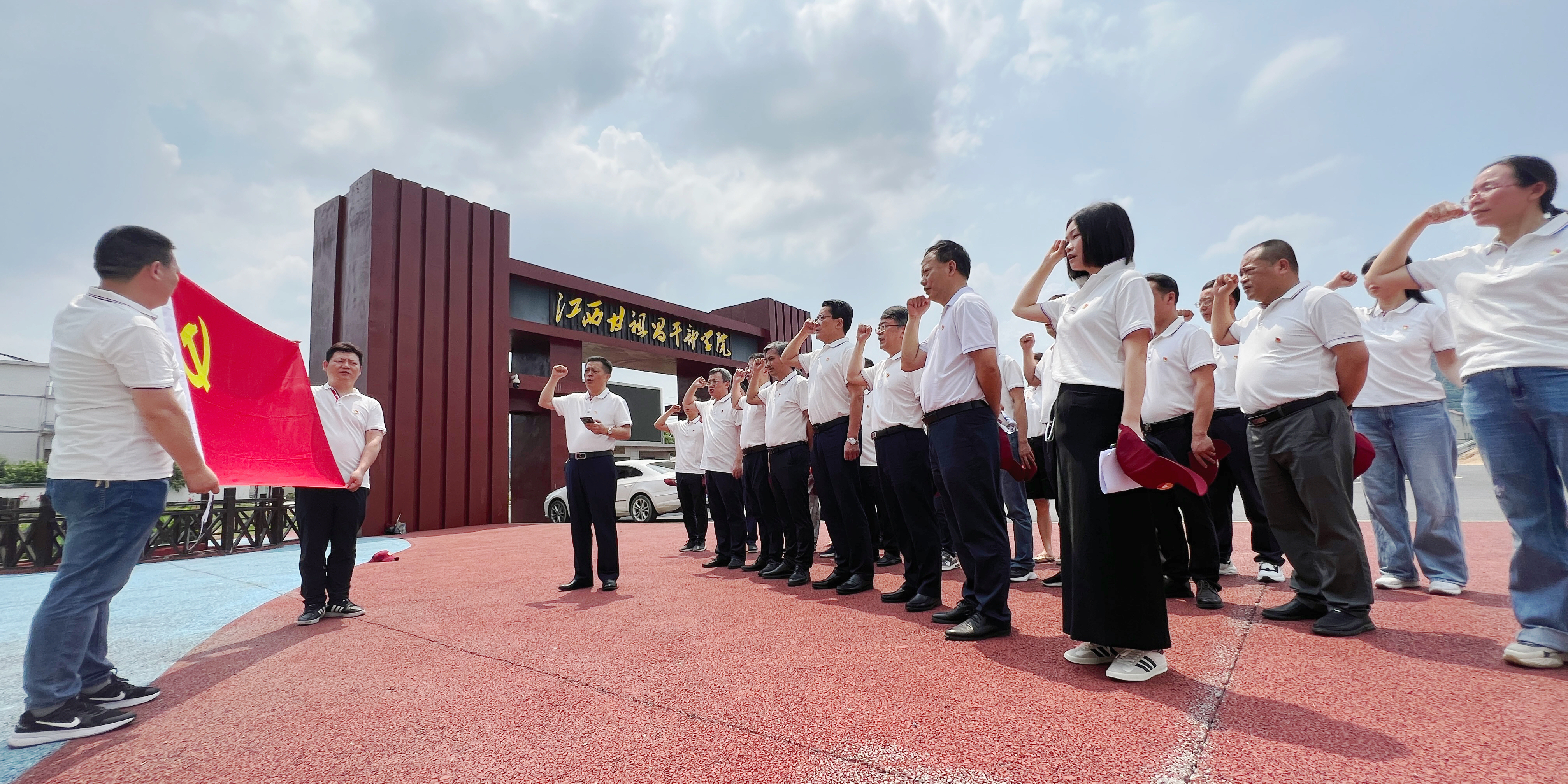 越深入学习了解,党员们心灵触动越大。白云悠悠,骄阳烈烈,站在甘祖昌将军雕塑旁,党员们面对着鲜红的党旗,精神抖擞地重温入党誓词:“我志愿加入中国共产党,拥护党的纲领,遵守党的章程……”铿锵有力的誓言回荡上空。