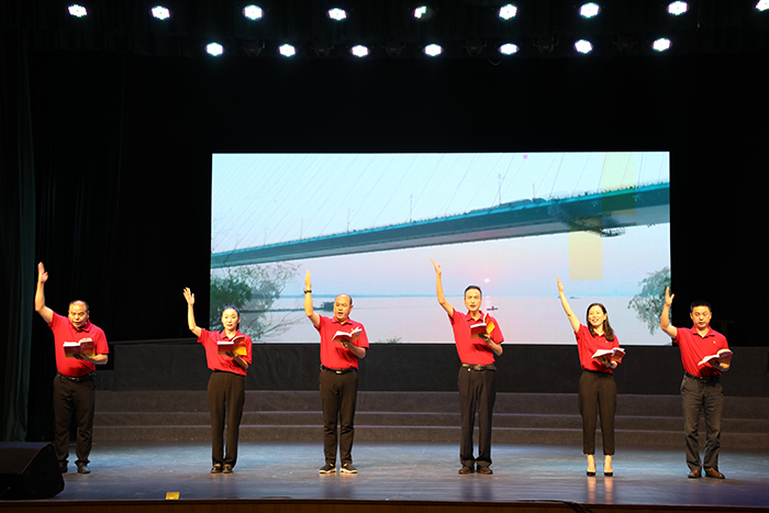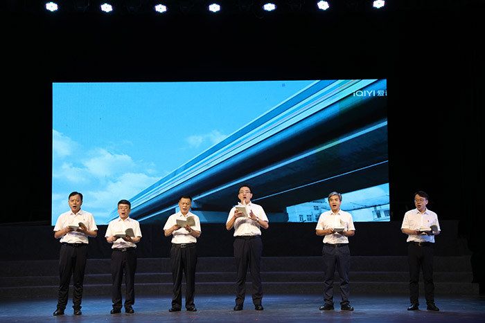 集团优秀党员代表、中层管理人员代表、优秀党务工作者代表先后登台,深情诵读《党的二十大报告学习辅导百问》《习近平新时代中国特色社会主义思想学习纲要》《论党的自我革命》等原著中,关于“新时代新征程中国共产党的使命任务”“加快构建新发展格局,着力推动高质量发展” “坚定不移全面从严治党,深入推进新时代党的建设新的伟大工程”精选内容。诵读者或豪迈奔放、或温婉多情的演绎,呈现出一场爱党爱国的视听盛宴,展现了集团党员干部昂扬向上的精神面貌和践行初心使命的坚定信心。