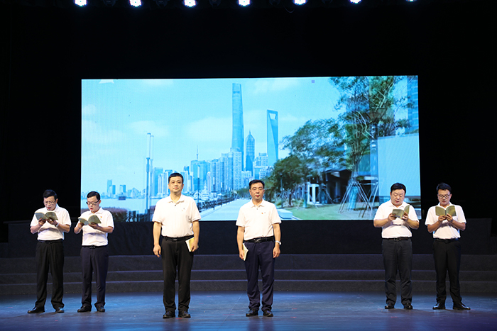 “我们的人民热爱生活,期盼有更好的教育、更稳定的工作、更满意的收入、更可靠的社会保障、更高水平的医疗卫生服务、更舒适的居住条件、更优美的环境,期盼孩子们能成长得更好、工作得更好、生活得更好。人民对美好生活的向往,就是我们的奋斗目标。”随着习近平总书记重要讲话视频结束,集团领导班子成员慷慨激昂地接续诵读《习近平新时代中国特色社会主义思想专题摘编》中“坚持以人民为中心”部分内容,用激情澎湃、高昂向上的时代强音,激荡起广大党员干部的昂扬斗志,展现出新时代领导班子的卓然风采,充满了浓浓的爱国情、向党志、人民情。“让全体中国人民和中华儿女在实现中华民族伟大复兴的历史进程中共享幸福和荣光!”铿锵有力的诵读将整场活动推向高潮,现场响起热烈掌声。