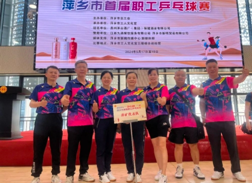 5月17日—19日,“茅台醇杯”2024年萍乡市首届职工乒乓球赛在市工人文化宫举行,萍矿集团代表队收获男双第六名、女双和男单八强。