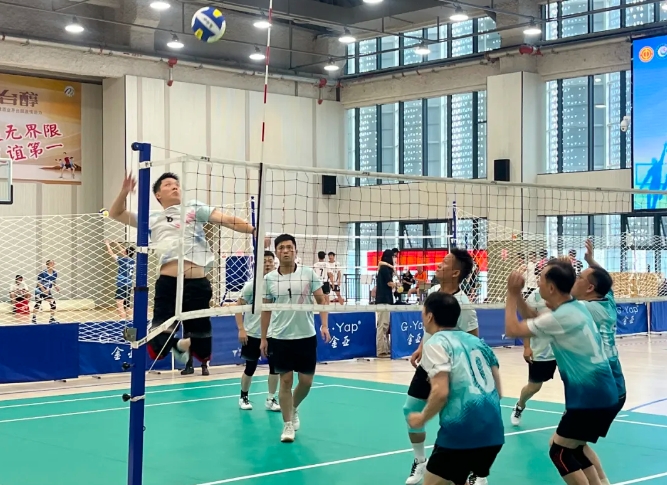 赛场上,萍矿集团代表队队员们个个精神抖擞,目光坚定而专注。在与市政服务中心代表队的比拼中,大家目光都聚焦在小小的气排球上,双方在网前展开了激烈的争夺。球在空中飞来飞去,接球的队员迅速移动,准确地将球垫起,每一次跳跃、每一次扑球都用尽了全身的力气。队员们默契配合,传球、扣球,动作一气呵成。
