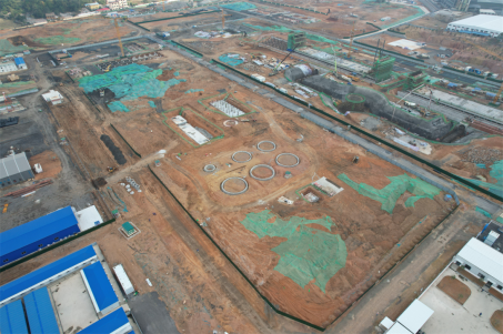 化产区域:硫铵厂房基础短柱混凝土浇筑完成;焦油氨水分离罐基础混凝土浇筑完成;洗脱苯工段洗苯塔及终冷器基础承台混凝土浇筑完成;冷鼓工段初冷器底板钢筋绑扎完成;焦化罐区粗苯罐组防火堤混凝土浇筑完成。