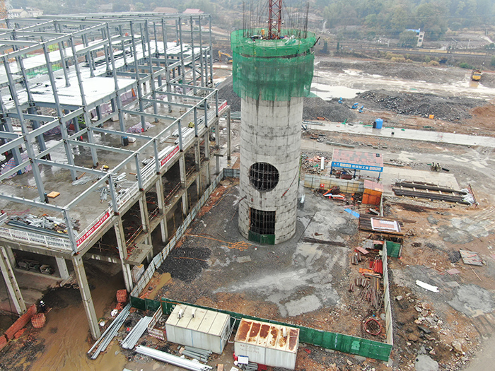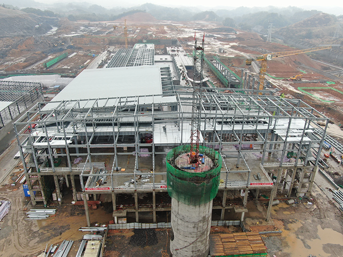 烟囱:基础工程完成,主体工程完成25%。 成品工段:独立基础工程完成75%,挡土墙完成20%。 装箱工段:独立基础工程完成25%。 均化库:独立基础完成25%。