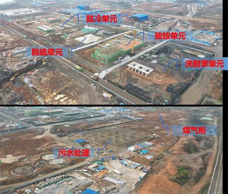 1.鼓冷单元、焦油氨水分离单元、硫铵单元、洗脱苯单元主要设备基础浇筑完成。