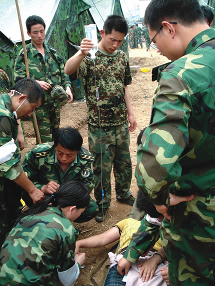 下午三点左右,记者听说县城发现了被埋的活者,准备去采访。这时大批人员涌上来,其中七八名救援人员用担架抬一女子飞速跑,跑到二炮野战医院帐篷进行抢救,记者现场采访了那女人的弟弟,原来这女人叫李应霞,30多岁,她丈夫是县运输乐鱼页面在线登录的,地震中死亡。但她天天守在丈夫被埋的现场。刚才接到上面水坝透水,有垮堤可能,要紧急撤离的消息。于是人们飞跑,她也跑,因为身体太虚,造成休克。