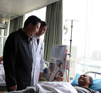 2013年4月2日,江西省委书记强卫来到湘雅萍矿合作医院调研指导工作。