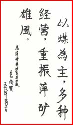 陕西省省长(原萍乡矿务局局长)程安东题词