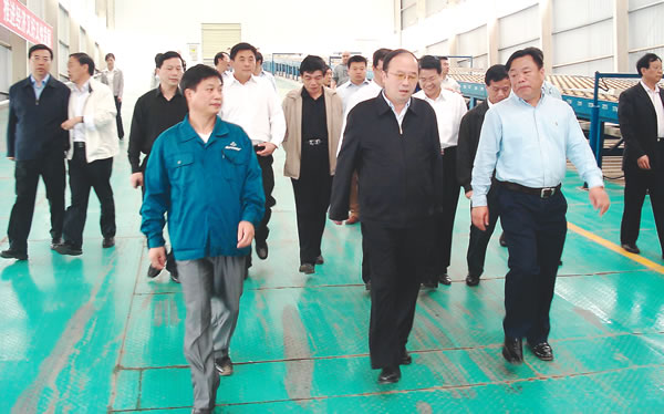 上午11时,张裔炯一行首先来到安源玻璃工业园萍乡浮法玻璃厂新二线联合车间。在联合车间,张裔炯详细了解了企业生产、经营和销售情况,他一边走,一边仔细听取了企业负责人的情况汇报。在中央控制室,张裔炯一行参观了玻璃生产视频流程和安源玻璃工业园项目筹建党支部后,对安源玻璃工业园高质量、高速度、高效率建设所产生的社会效益和经济效益给予了充分肯定。他说:“企业要一手抓好经济建设,一手抓好党的建设工作,把创先争优工作落到实处,同时要把更多的优秀员工发展为党员,通过党组织的坚强领导和党员的先锋模范作用,进一步凝聚职工力量,促进企业持续健康发展,稳步做大做强。”
