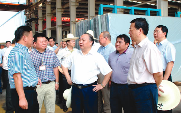 走出车间,凌成兴一行在烈日下步行来到250吨/天光伏玻璃生产线建设工地。当得知项目建设已完成75%以上的工程量,有望9月底顺利实现点火投产时,凌成兴非常高兴。刘建高汇报说,安源股份乐鱼页面在线登录在省委省政府和萍乡市委市政府的关怀和支持下,紧紧抓住省煤炭集团乐鱼页面在线登录重大战略重组机遇,全力推进玻璃产业的发展,争取完成“三年建四线六窑”的任务,努力打造一条完整的玻璃产业链,使安源玻璃工业园成为年产值30亿元、年利税5亿元的玻璃生产和深加工基地,积极推动企业转型发展和地方经济建设。凌成兴指出,安源玻璃工业园在改造转型中壮大了规模,希望继续加快建设,变工程项目为现实生产力,为萍乡乃至江西社会经济发展作出应有贡献。