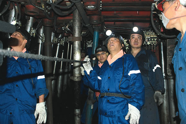 4月9日上午,前来参加安源煤矿质量标准化现场会的集团乐鱼页面在线登录董事长、党委书记彭志祥等领导,有关部门人员及各矿负责人边听介绍,边参观采四区风巷两侧整齐支撑着的单顶柱,大家个个都啧啧称赞。